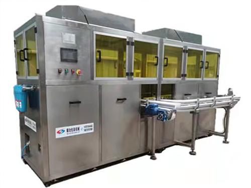 DCQ250/1000型夾式洗瓶機(jī)主要用于瓶型規(guī)格較多的生產(chǎn)廠家,其操作相當(dāng)便利,瓶子正立進(jìn)入氣洗機(jī),便于人工或者自動(dòng)上瓶;瓶子進(jìn)入機(jī)器后自動(dòng)翻轉(zhuǎn)180度,瓶口朝下,便于徹底清洗及收集污染物;清洗后,瓶子再翻轉(zhuǎn)180度正立輸送出清洗機(jī),有利于塑料瓶收集或者銜接灌裝線?!?/p>
